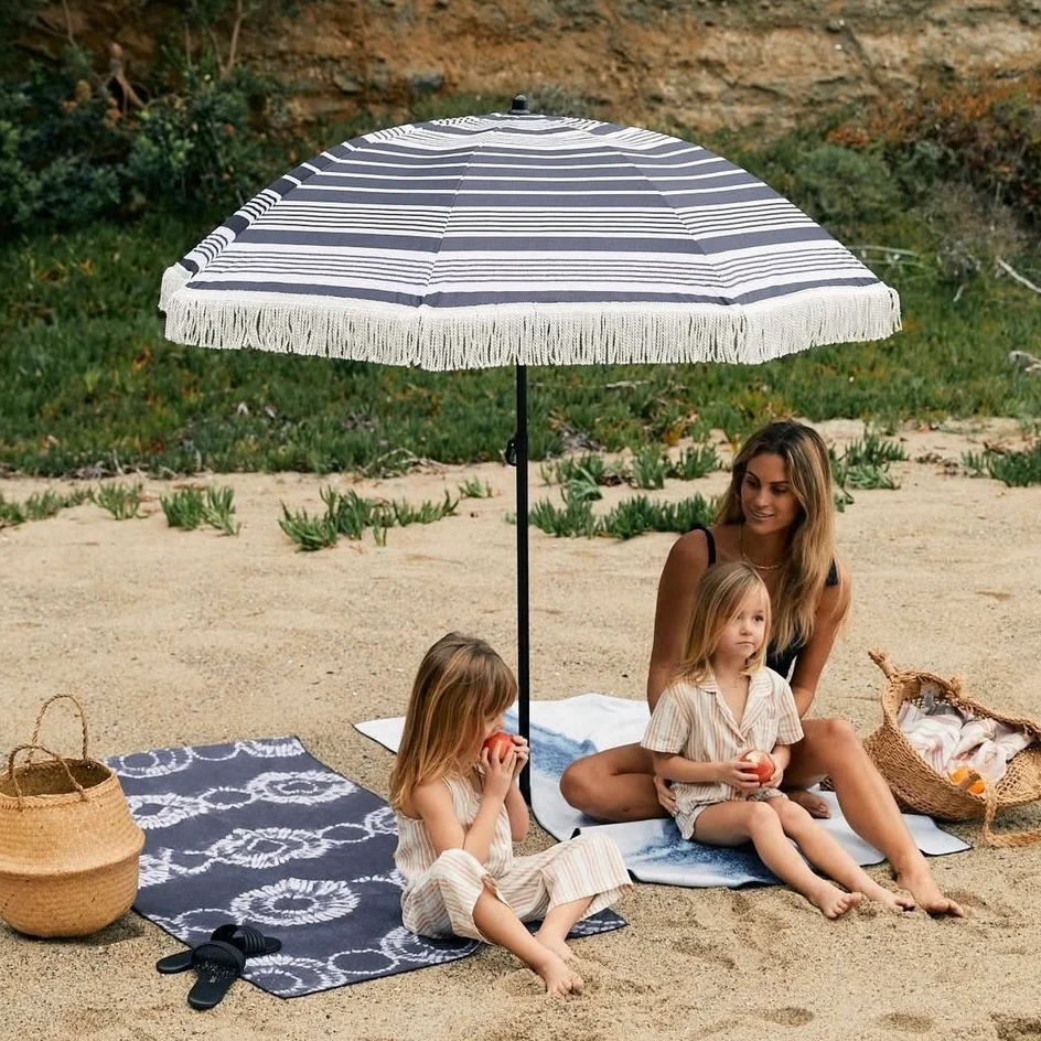 Geometry’s beach towels are known for their lightweight material and high absorbency. Made from recycled fibers, these towels dry quickly and pack small. Available in a wide range of bold patterns, they are easy to spot on a crowded beach.