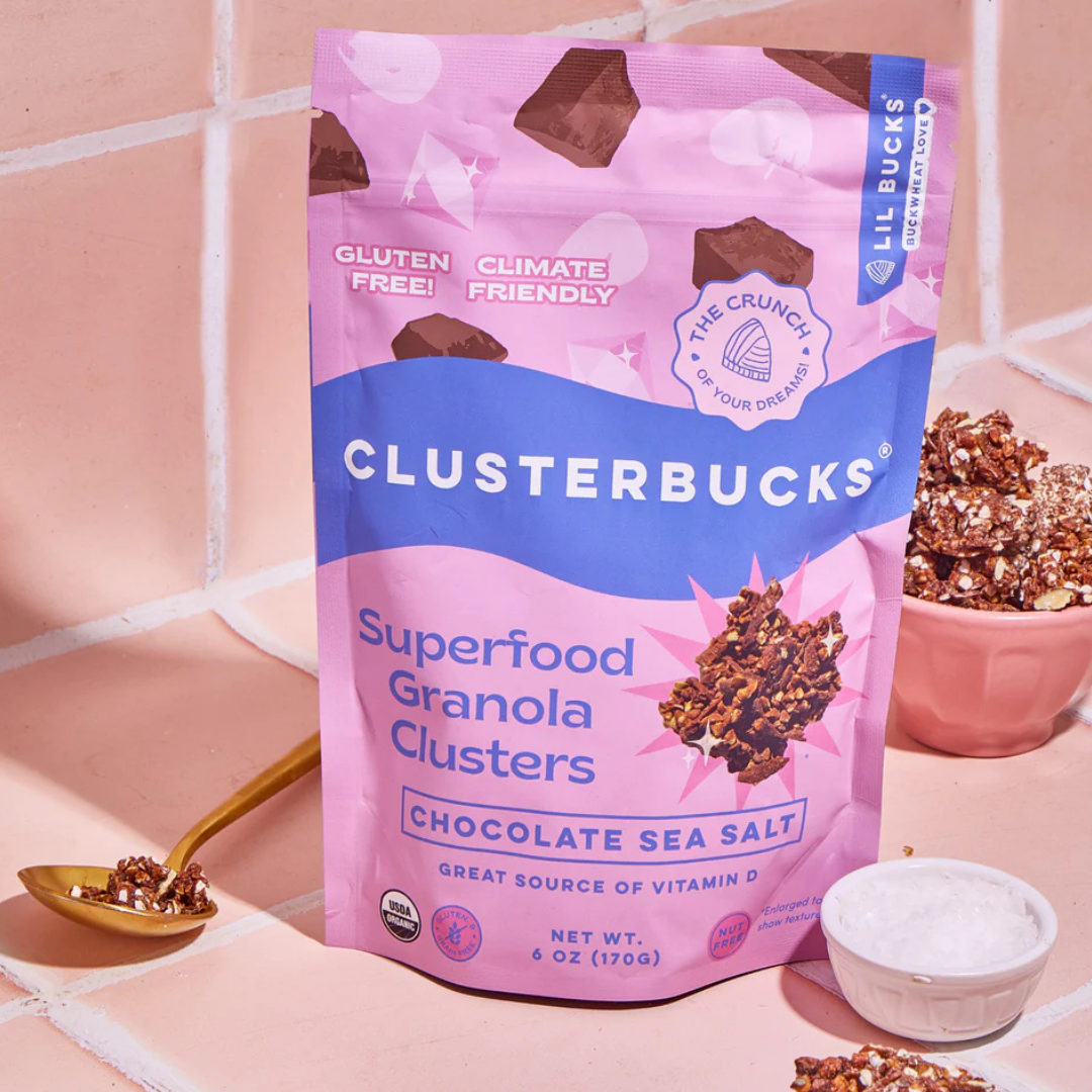 Lil Bucks makes Clusterbucks, a crunchy trail snack made with buckwheat clusters. Clusterbucks are gluten-free, plant-based, and available in flavors like Cinnamon and Chocolate Reishi. We’re pretty obsessed with eating these just about anywhere.