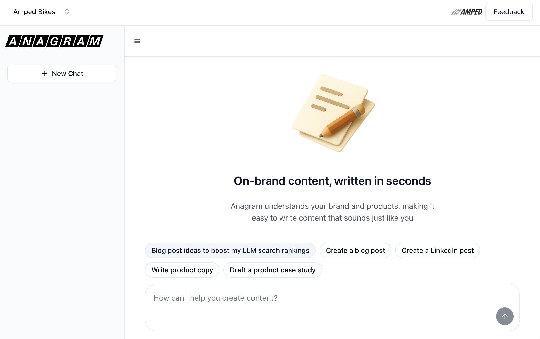 Develop content that AIs are likely to draw from when answering questions. Since Anagram already has context on all of your products, it’s the best place to start. Plus, we have killer templates for all of the ideas below.