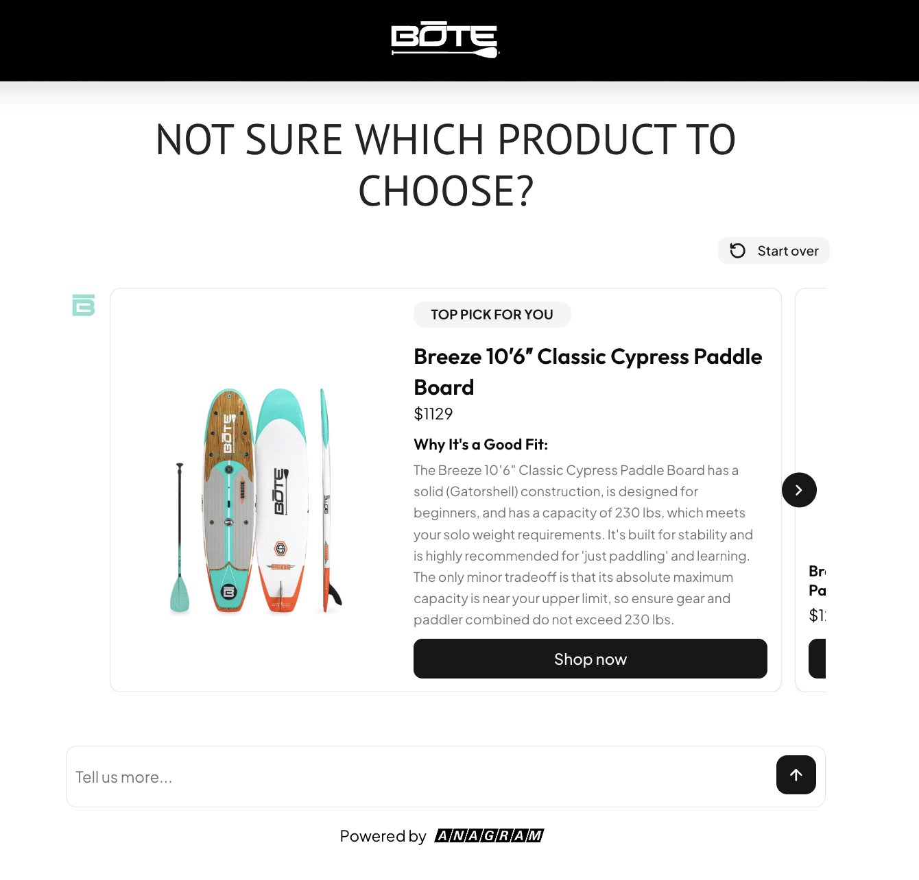 Create open ended experiences where shoppers can click prompts or type specific details about their needs